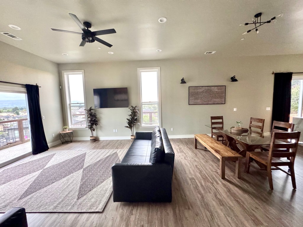 Brand new construction with attention to every detailPrimary Bathroom with tiled grand 11′ tall shower, dual sinks, and vanity areaGuest Bath with dual sinks and shower/tub comboMain Living AreaPrimary Bedroom with access to private wraparound deckEntrance and Covered PorchThe views never disappointReady for your stay